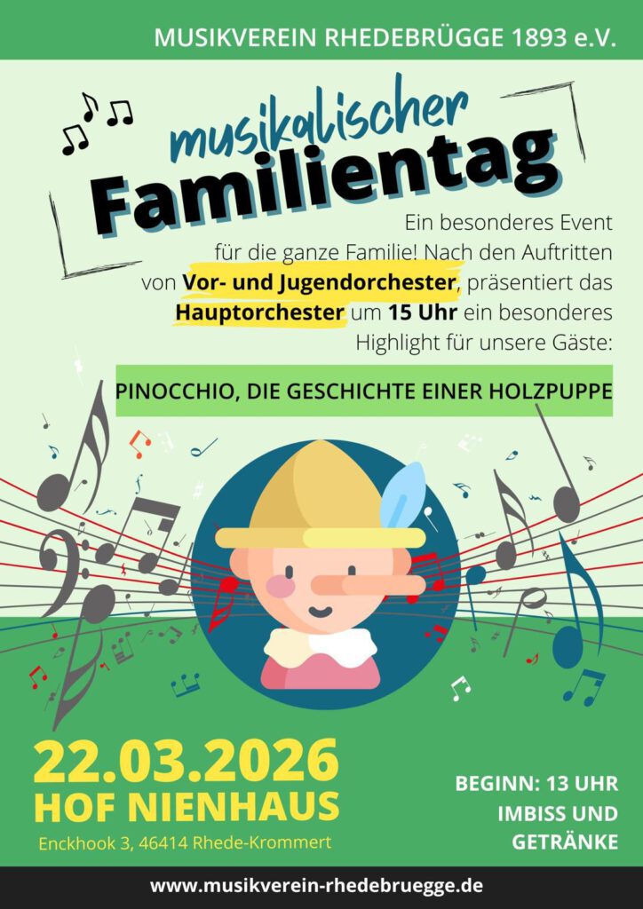 22. März 2026 musikalischer Familientag – 13:00 Uhr, Hof Nienhaus, Enhook 3, 46414 Rhede-Krommert