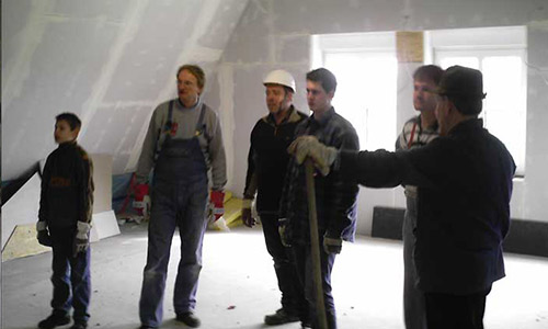 So haben wir im Jahr 2004 bei der Stadt Borken die Möglichkeit angefragt, die Räume im Dachgeschoss des Kindergartens Rhedebrügge zu nutzen. Die Räume mussten von uns in Eigenleistung und auf eigene Kosten renoviert werden. Dieser großen Herausforderung stellte sich der gesamte Vorstand, sowie alle aktiven und passiven Mitglieder des Musikvereins Rhedebrügge. Am 09. Januar 2007 fand in den neuen Räumlichkeiten die erste große Orchesterprobe statt und am Sonntag, dem 22. April 2007 wurden die neuen Vereinsräume offiziell eingeweiht und von Pastor Repges gesegnet.